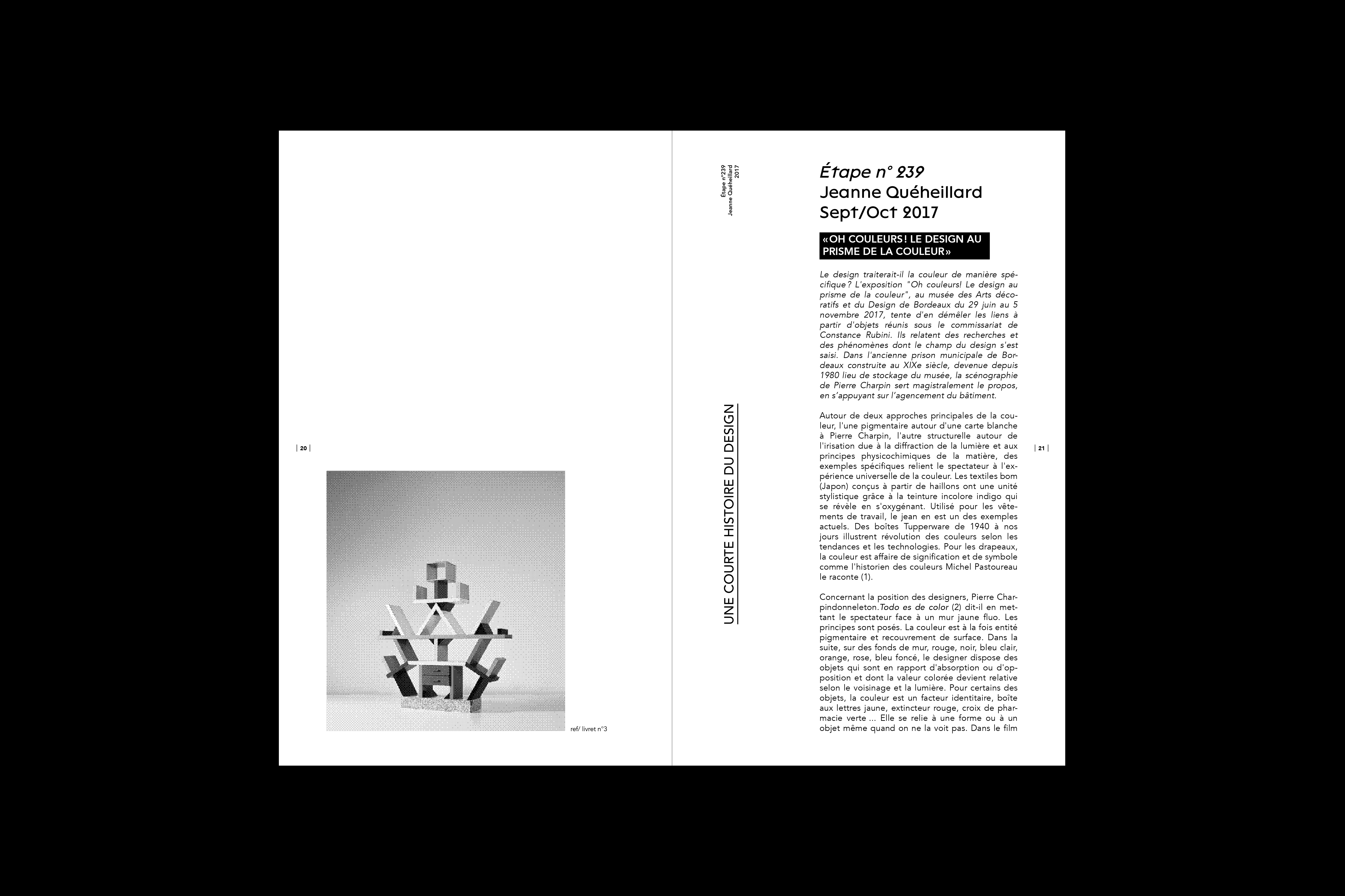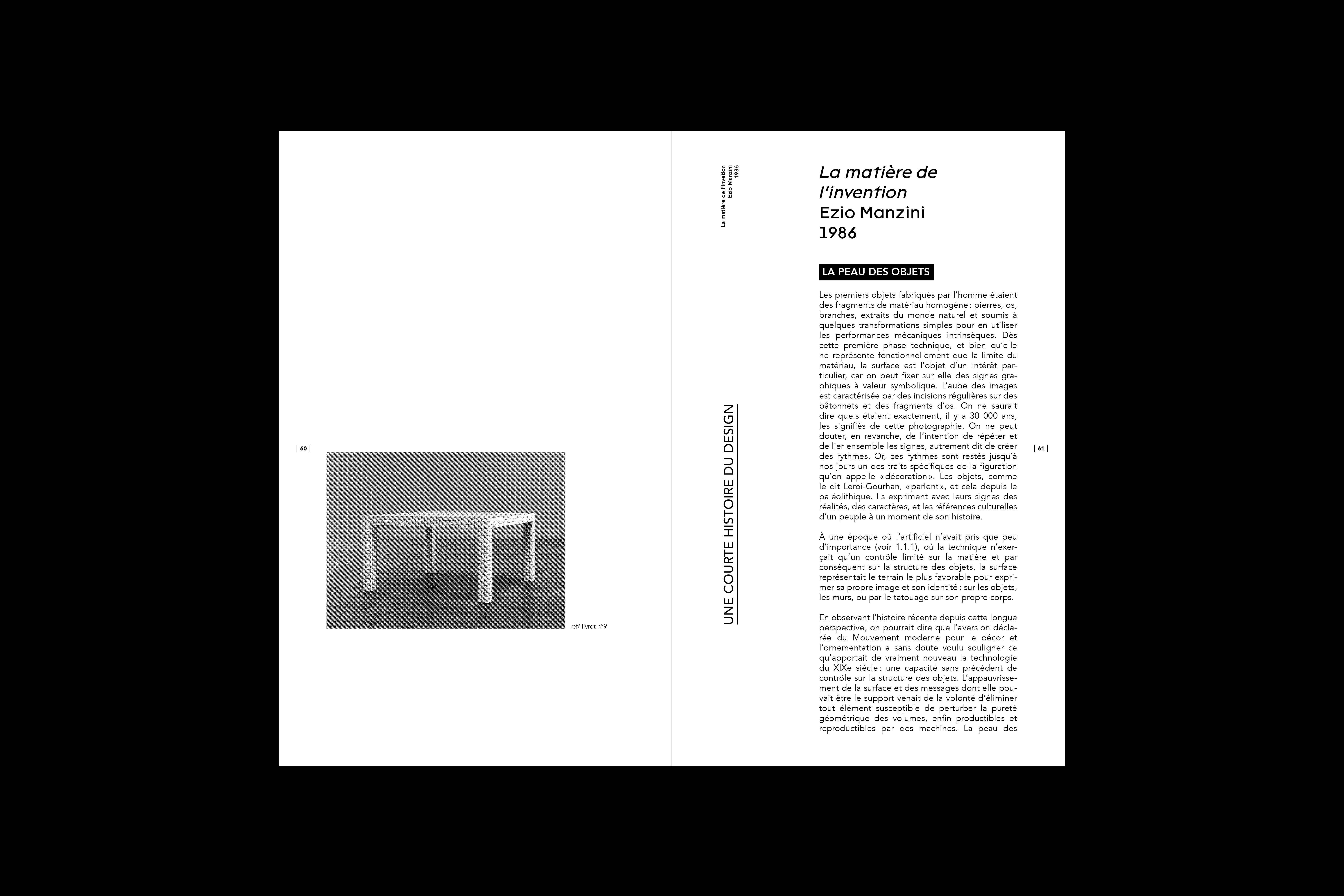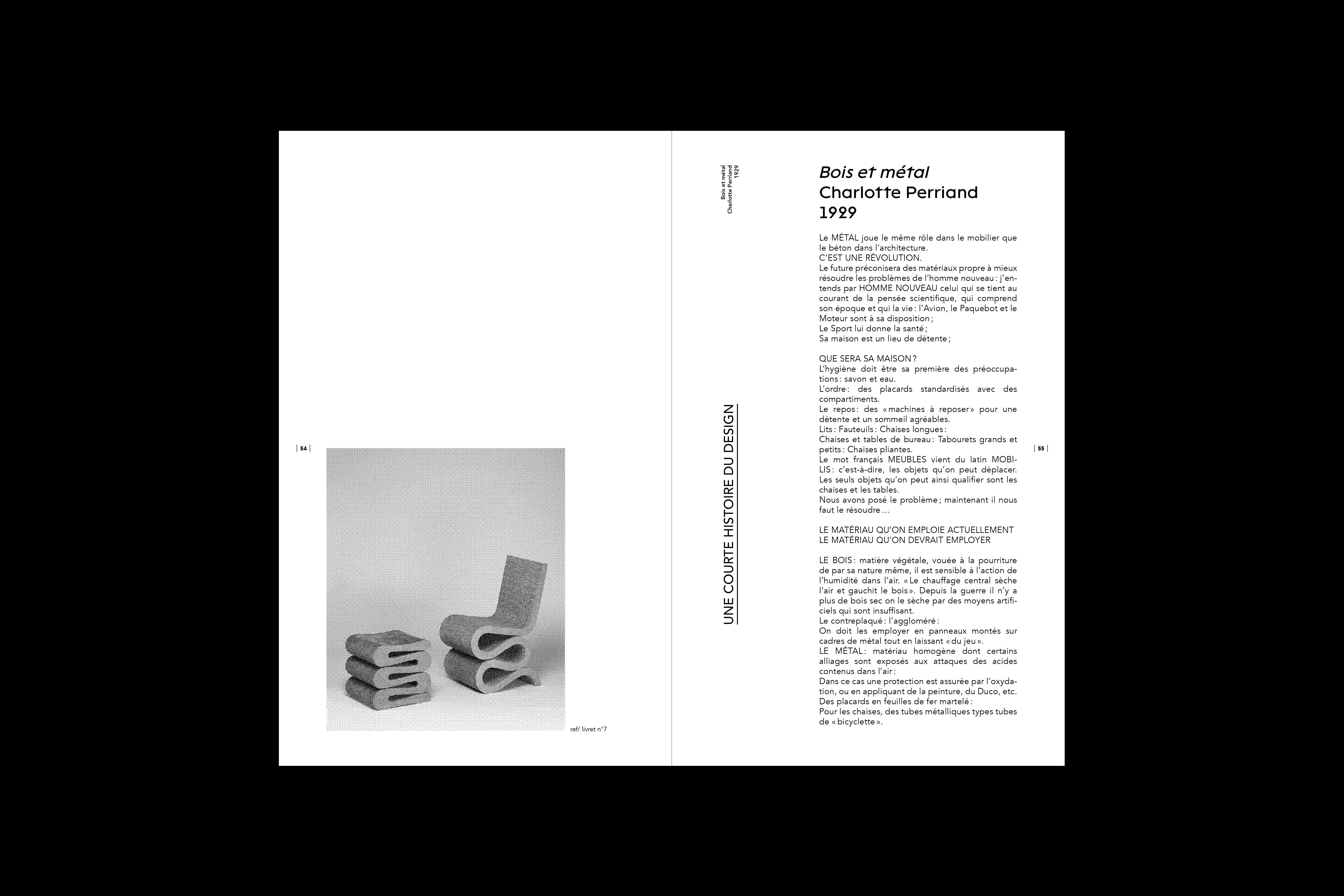 Le but de ce projet éditorial est de créer une courte histoire du design à travers les matériaux et les couleurs. Cette histoire est composée d’une édition principale, faisant office d’un recueil de dix textes ainsi que dix objets en rapport avec les matériaux et les couleurs dans le design. Dix livrets complémentaires amènent alors des informations et anecdotes sur les objets sélectionnés.